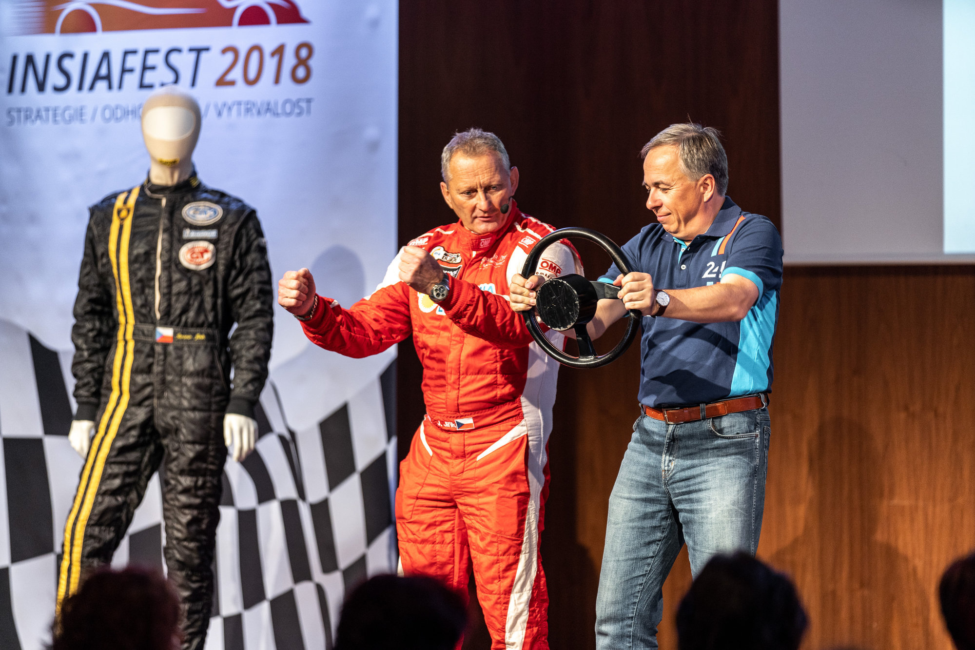 Po slávnostnom zahájení nasledovala ďalšia veľmi zaujímavá prednáška, o ktorú sa postaral doktor Jaromír Jiřík, hlavná osobnosť konferencie. Pán Jiřík hovoril o zákulisí vytrvalostných automobilových pretekov. Za sprievodu autentických video záberov vzal všetkých prítomných na jazdu, na ktorú len tak nezabudnú.