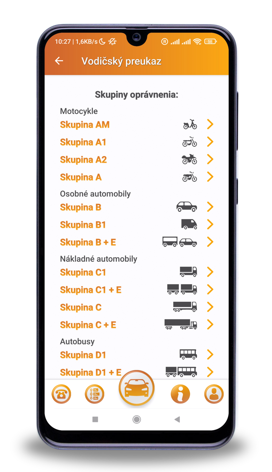 V Aplikácii AutoMobil pribudla nová sekcia Vodičský preukaz. Nájdete tu prehľad všetkých kategórií vodičských oprávnení vrátane ich špecifikácie.