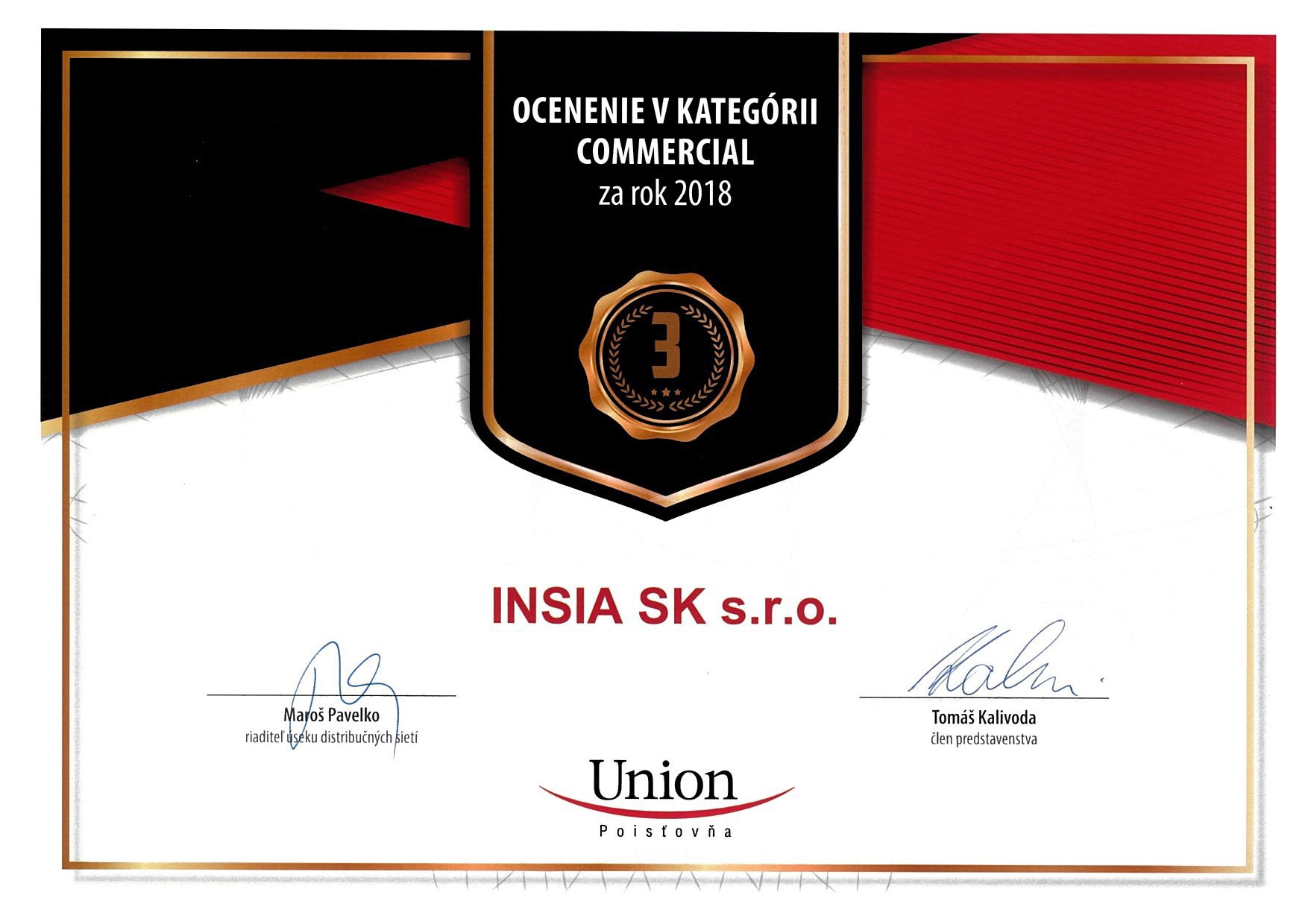 S potešením Vám prinášame informáciu o úspechu INSIA SK na odovzdávaní ocenení za dosiahnuté obchodné výsledky za rok 2018 v poisťovni Union.